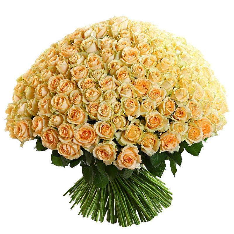 Букет состоит из 151 кремовая роза, прозрачная упаковка, атласная лента.